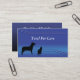 Silhouette of a dog and cat on a blue gradient background with blue styled bars to make the card look modern and professional. Great card for veterinarians and pet grooming or walking companies.