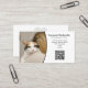 This eye catching business card design features your custom photo and QR code with all your details on the front on a white background. A heart of paws is on the back. Fill in the template fields with your information, remove any text or edit using the design tool to select a font style, size, and colour you prefer. Replace the custom photo with yours and replace the QR code link with yours. The QR code link can lead customers to your website, photographs of your work or reviews. This signature matte finish is ideal for writing on the back without smudges. Placeholder photograph and artwork courtesy pixabay.com.