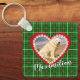 This gorgeous christmas keychain is a loving celebration of your faithful friend. There is a tartan-style background design in red, green and white on both the front and back. Upload your favourite photo and add a name or other short text. The photo is framed in a red heart with an edging of white pawprints. On the back there is further customisable text (the default is simply "Happy Christmas").
