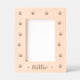 Etched wooden photo frame featuring your pet's name flanked by two hearts, and a pattern of paw prints.