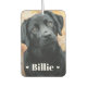 Car air freshener featuring your custom pet photo with the pet's name as a white text overlay flanked by two hearts.