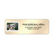 Elegant, peach pink DIY personalised return address label for one person (can be customised for a family as well), with a stand-in (with a mask with rounded corners) for a photo of your pet cat (or one of you and your furball friend; or you can upload a photo of a dog instead), and with elegant calligraphy / handwriting script with flourishes for your first and last name or your family's name plus all-caps writing for your address. On a stylish vintage sepia background with a white frame for the pet's photo.