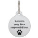 Make your pet’s personality shine with this funny custom pet ID tag! The front features a fun, playful phrase “ Running away from responsibilities.” and a black paw print, perfect for sassy dogs and cats who aren’t afraid to show a little attitude. On the back, you can add your pet’s name and contact information to keep them safe if they ever wander off. All text is fully customisable to fit your pet’s personality. Default background is grey and text is black. This personalised pet ID tag is not only practical for safety but also a conversation starter at the dog park. Whether you want it for your own furry friend or as a funny present for a pet owner, it’s the perfect mix of humour and function.