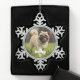 Pet Dog Simple Paw Print Custom Name Photo Snowflake Pewter Christmas Ornament