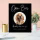 Cute editable pet wedding signature drink sign features a circle frame to feature your pet's picture along with calligraphy font Open Bar, drinks are on us! Personalise with the bride and groom's names and pet name.