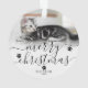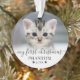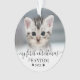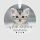 Personalised My First Christmas Cat Photo Ornament. Celebrate your kitten's very first Christmas with this charming, custom-made ornament, designed to capture the joy of your beloved feline’s first holiday season. The front features a spot for a photo of your kitty with the phrase "My First Christmas" in elegant script calligraphy, along with your cat’s name and birth year for a personalised touch. On the back, there’s space for a second photo paired with "Merry Christmas" in the same delicate script, with your cat's name and year displayed smaller at the bottom. Light grey snowflake accents add a touch of winter charm, while a soft white ombre effect at the bottom of each photo creates a seamless, refined transition. Both font and snowflake colours can be customised to match your style. This keepsake ornament is perfect for cat moms, cat dads, or any feline-loving family celebrating their kitty’s first holiday season, adding warmth and personality to your tree or as a thoughtful gift for fellow cat lovers.