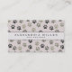 Modern business card features a stylish and whimsical animal paw print pattern in a pale blush pink colour palette with complimentary neutral paw prints with custom name and title or role presented on a coordinating light pale pink banner with coordinating accents and text. The back of the card is plain and simple with coordinating text on a pale blush pink background. Stylish pet themed business cards that are perfect for pet sitters, dog walkers, groomers, doggie day cares, veterinarians, other animal professionals or more.