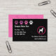 Trendy pet grooming editable business cards in a stylish designer paw prints graphic and Pet Groomer emblem you can use on our cards. Designed for themes related to Pet Salon Stylist, mobile pet groomer, or Pet Boutique.