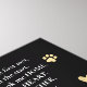 I love the unique photo collage design with phrasing; it's a perfect blend of elements to pay tribute to a fur baby you miss. The overall design is classic and muted; the background silhouettes complement overall tone of the composition. It looks tasteful hanging on a wall. The editing tools to customize the pictures and name are very easy to use. The colors turned out spot-on to what I expected. If anything, it looks better than I expected.