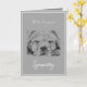 This refined sympathy card showcases a gently sleeping puppy, artistically rendered in grey and seamlessly integrated into a sleek, rectangular design. The monochromatic grey tones create a calming and modern aesthetic, while the white font adds a crisp contrast for a clean and elegant look. Perfectly suited to express your condolences, the card’s understated yet poignant imagery offers solace and comfort during a difficult time. The combination of minimalist design and heartfelt sentiment makes it a beautiful way to honour the memory of a cherished canine friend. A graceful and comforting choice for conveying your sympathy.