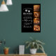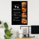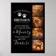 Elegant pet tribute photo print featuring a stylish black background that can be changed to any colour, a 4 photo collage of the pet your remembering, a sympathy quote that reads "when someone you love becomes a memory, those memories become treasure", paw prints, the name of your dog or cat, and their birth/death date.