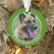 This ornament is a loving memoriam to your dog or cat. It has a green border around your pet's photo and can be personalised with the pet's name. You can alter the wording if you wish. It can be hung in your home or office, or on a Christmas tree. In loving memory, to remind you of a loved dog.