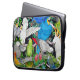 Original fine art painting of colourful pet parrots by artist Carolyn McFann of Two Purring Cats Studio printed on a quality computer laptop sleeve for parrot lovers.
