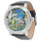Original fine art design of colourful pet parrots of the world including macaws, African grey, Umbrella cockatoo, budgerigars, cockatiels and more by artist Carolyn McFann of Two Purring Cats Studio printed on a quality watch for parrot fans.