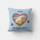 This pillow has a soft blue background to create a loving memory of your best friend. There are a couple of pawprints on the front, and red hearts on the back. Upload a photo of your pet, and edit the text to personalise it as required. On the front you could add the name of your pet for example, or dates, or the location of the photo maybe. On the back, the message is also customisable, and this currently reads "Pets leave paw prints on our hearts".