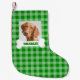 Pet Photo and Dog Bone with Name on Green Plaid Small Christmas Stocking