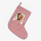Pet Photo & Dog Bone with Name on Red White Plaid Small Christmas Stocking
