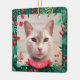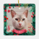 In this design you can add a custom pet cat or dog photo or pet of any kind. The design features a border of hand painted watercolor botanical florals in reds and greens and a red banner where you can add your pet's name. See the whole matching collection.