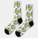Customisable pet photo in a circle with loving pink hearts and paw print pattern in the background. Easily add your pet dog or cat photo to make fun socks for a dog or cat dad. This is a great gift idea for dog owners or cat owners.