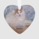Make a personalised heart-shaped Christmas ornament to honour a loved pet. Replace the photo of the cat with a photo of your pet. Change the name at the bottom of the photo to your pet's name. The quote, "Forever in my heart," is written in blue script on the back of the photo. The back of the ornament is filled with blue pawprints. The years of your pet's life are written below the quote.