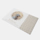 Beautiful pet photo template design with white paws on a beige background colour. Personalise this design by changing the sample Golden Retriever puppy photo with a photograph of your own pet. Also edit the custom text areas with the name of your family or other custom text. 2/3 of the design area is white featuring a lovely circle shape frame for any photo while 1/3 of the design is beige with a pattern of white dog paw prints. The custom photo is displayed through a round frame that has soft edges allowing for the photo to be seen through it. Under the photo there are two personalizable text areas where the top reads: "Welcome" and the bottom text has space for a custom family name. If you would like to change the beige background colour or the beige font colour, please enter the design tool to do it. There you can also change the font style and size, if you like. This lovely pet photo template design is perfect for people who adore their pet. It also makes for a wonderful gift idea.