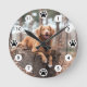 Pet Photo Round Wall Clock. This simple design features numbers in black text on white, the numbers 12, 3, 6, and 9 are black paw prints on white. Use Zazzle's customisation tools to add your own pet photo. We invite you to visit our Zazzle's store for matching products and more.
