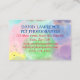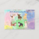 Capture cherished moments with my vibrant pet photographer dog walker business card! Adorned with playful dogs, this colourful design invites pet owners to preserve memories with their beloved furry companions. Perfect for pet parents seeking professional photography services to immortalise their pets' personalities. Whether you're a dog lover, cat enthusiast, or any pet owner in between, my customisable business card ensures your contact information stands out in style. Share your passion for pets and photography with this eye-catching design. Let's create paw-some memories together!