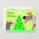 Cute holiday postcard for your pet sitting business. Dog, cat and bird with Christmas tree. Greeting says Happy Holidays, but all text is customisable. Great for all pet care professionals.