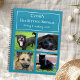 Pet sitter or dog walker planner for the new year. Teal blue with two lines of white text at the top and four photo templates for pictures of pets. Dog and cat photo holders can be replaced with your own favourite animal photos.