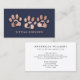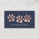 Elegant pet sitting services rose gold & navy business card featuring paw print in rose gold colour on a navy background. personalise with more details on the back.