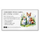 Modern and trendy pet sitting services magnetic business card featuring a charming watercolor illustration of a dog and cat surrounded by lush greenery. The card includes your name, title, contact information, a list of services, and social media details.