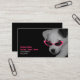 A business card for a vererinarian featuring a black and white photo of a white dog with a brown ear and pink retro cat eye sunglasses illustration. Personalise with your information on front and back.