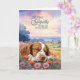 Lying in a field of wildflowers on a beautiful hillside with a expansive view, this Brittany Spaniel dog creates a sentimental feeling on this pet sympathy card.