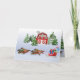 Pet Tervuren Dogs are pulling the red Christmas Sleigh! The 4 Terv dogs are pulling a sleigh with gifts. A red barn and snowman are in the background. You can personalise with your last name on the barn and change the greeting on the inside. Illustrated by artist ©Jacqueline Schneider