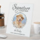 Customise this pet wedding sign with your dog, cat, puppy or kitten favourite photo, name and signature drink!. COPYRIGHT © 2020 Judy Burrows, Black Dog Art - All Rights Reserved. Pet Wedding Signature Drinks Dog Bar Cocktail Pedestal Sign