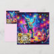 The card depicts a wacky robot entertaining children. It features a robot, a cake, and bright fluorescent lights. The back has a small version of the front image and plenty of room to write a message. AI Bing assisted in the creation of the card.