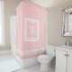 Petal Pink and White Classic Square Monogram Shower Curtain