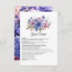 Petal pink, cornflower blue, and mauve purple floral wedding guest details card customisable to your event specifics.