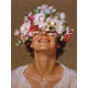 "Petal Pride" Margaret - Art & Floral Society. Margaret is a Schoolteacher and has a cascade of blooms framing her face shows a woman who’s clearly proud of her floral accomplishments, even if they seem a bit absurd captured in the stylised humourous watercolour portrait.