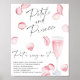 Watercolor elegant rose petals with glass of champagne and text "Petals and Prosecco".