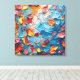 This richly textured abstract artwork captures the beauty of scattered petals suspended in motion, blending painterly depth with vibrant color harmony. Thick, flowing strokes of blue create a dynamic, almost ocean-like foundation, while warm petals in shades of coral, crimson, gold, and soft blush drift across the surface. The layered paint texture gives the piece a tactile, almost sculptural quality that feels alive and emotionally engaging.