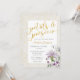 This bridal petals and prosecco invitation features wildflowers in shades of periwinkle, pink and white. The wording is in a gold sparkle design and the background is sprinkled with lots of gold bling sparkles.