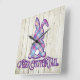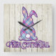 Peter Cottontail Purple Plaid Easter Bunny Square Wall Clock