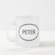 Check out this Peter mug! Is your name Peter? Or do you have a husband, boyfriend, male family member or male friend named Peter? If so, this "Name Stamp" mug is exactly the gift that you're looking for! The design features "Peter" in big black lettering surrounded by two ovals, one thin and one thick.