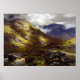 Shadows of clouds wander across a mountain landscape as painted by Peter Graham.