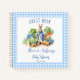 Peter rabbit with a blue jacket and garden vegetables baby shower guest book. A cute bunny in a blue jacket standing in veggie garden for a baby boy baby shower pastel blue gingham personalised guest book
