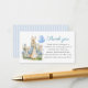 Send heartfelt thanks with this charming Peter Rabbit Baby Boy Thank You Flat Card. Featuring a classic Peter Rabbit design in blue tones, this card is perfect for expressing your gratitude with style and whimsy. Fully customisable and ideal for adding a personal touch to your baby shower appreciation!