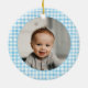 Watercolor Peter Rabbit Blue Baby Photo First Birthday Ornament. Matching items available.