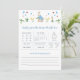 The BEATRIX Peter Rabbit baby shower predictions and advice game design features a white background with watercolor Peter Rabbit with elements from the garden, "baby predictions + advice" in a fancy serif in blue, the wording "advice for the parents to be" in a blue font. This baby predictions & advice game template is the perfect choice for a The Tale of Peter Rabbit baby shower game.