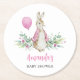 Watercolor Peter Rabbit Pink Baby Shower Paper Coaster. Matching items available.
